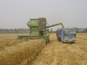 至6月6日,大圹圩农场午收全面展开,全场已完成 5450亩小麦收割任务,从登场的小麦估算,单产在 350公斤左右,最高可突破400公斤。+大圹圩农场今 年午季1.5万亩小麦普通长势喜人,产量有望突破历 史最好水平。为了确保午季粮食丰产丰收,颗粒归 仓,实现职工增收、企业增效。农场上下高度重 视,把午收夏种工作作为当前压倒一切的中心任 务,充分准备,精心组织,明确任务,统筹安排, 农场及时召开了全场午收夏种工作动员大会,各农 业分场及涉农部门结合场“三夏”动员大会及 《“三夏”工作意见》精神,积极开展午收夏种各 项工作。6月1 日,二分场率先打响午收战斗,随后几天,各分场 抢抓晴好天气,相继及时拉开午收序幕,眼下,各 分场掀起了麦收高潮,到处呈现一派紧张抢收的繁 忙景象,无论是田间收、运,还是场头晒粮,井井 有条,如火如荼,勤劳的人们正满怀丰收的喜悦以 昂扬的斗志全力以赴,力争尽早把辛苦半年的劳动 成果收上来,同时,不误农时完成夏种任务,争取 全年好收成。(夏庆芳)