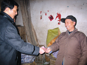 元月14日上午,场长曹长春、党委副书记高玉刚、 副场长钱超和人力资源部、工会办的有关人员一道 对全场困难职工进行慰问。