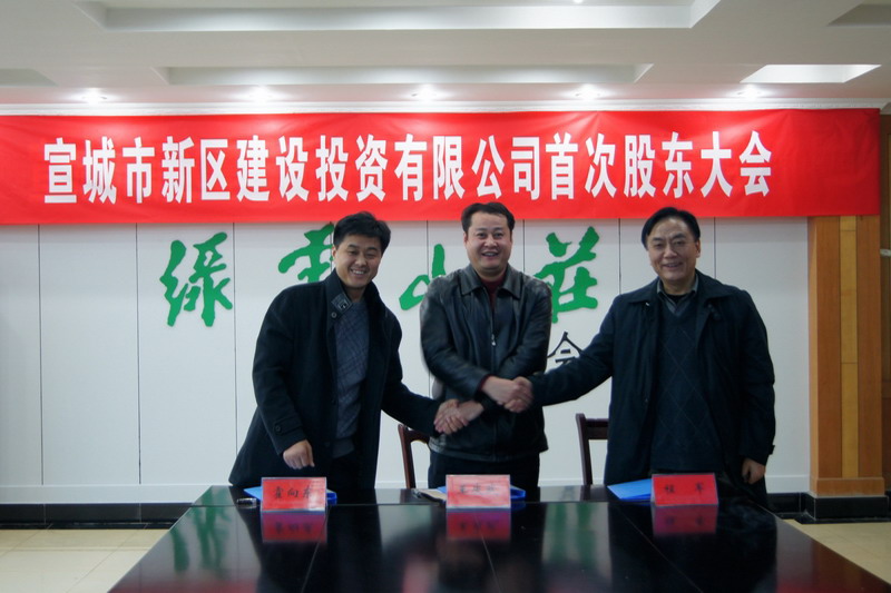 1218下午,由安徽农垦集团、建工集团、宣城市合作投资的宣城市新区建设投资有限公司创立大会在农垦敬亭山茶场胜利召开。宣城市彩金湖新区开发投资有限公司王庆武、省农垦集团副总经理程军、建工集团副总经理霍向东分别代表三家股东参加了首次股东大会。
