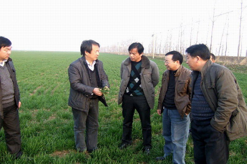 安徽农垦潘村湖农场当前小麦正处于起身期。34日,安徽农业大学黄正来教授(左二)一行来到农场田头指导小麦生产。