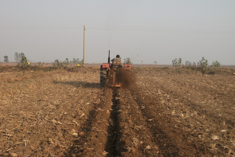 一场透雨后,太阳又出来了,老天总是眷顾勤劳的人。职工张树银开始给麦田开沟,他将保养过的开沟机开进麦田,一行行整齐的麦道,一条条笔直的墒沟,温暖的阳光,欢唱的小鸟……一种希望、一种幸福感在他的心中荡漾。