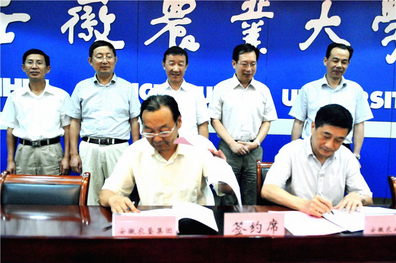 李卓民和宛晓春分别代表企校双方签署《安徽农垦集团与安徽农业大学企校合作协议》。根据协议,双方将按照优势互补、共谋发展、创新机制、讲求实效的原则,充分发挥各自优势,在共建研发中试平台、科技成果转化基地、教学科研实验示范基地以及人才培养等方面,建立长期、全面、深入的战略合作关系。