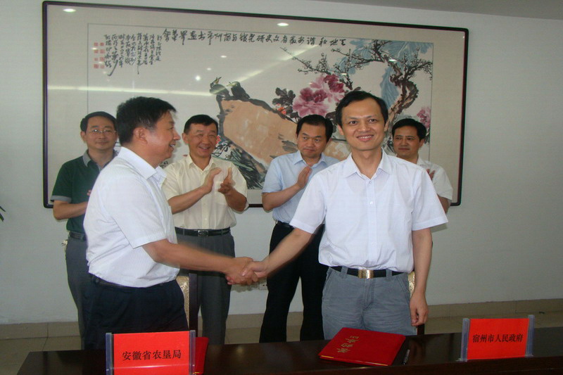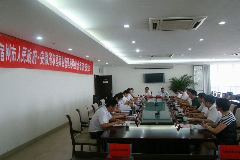 为进一步深化垦地合作内容,在2010年10月29日安徽农垦与宿州市的战略合作框架协议基础上,经过多轮洽谈,7月11日上午,省农垦集团(省农垦事业管理局)与宿州市人民政府签订了种业合作备忘录。