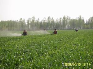 播小麦田进行施药防治。(图为七分场对出穗率达